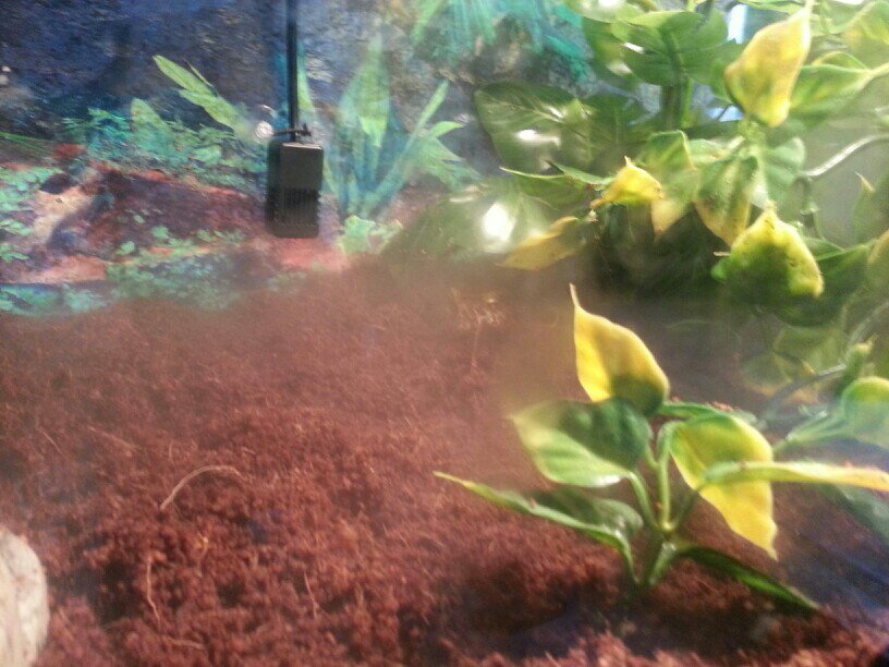 Yeah the other day I changed his bedding because it was soaked. Now i have it where it clumps on your hand but doesn't drip. I have noticed that the top layer has been drying out. But no worries, my wife and I keep a close eye on it and spray it down when we see it starting to dry out. I was thinking of getting a bigger soak tub for Mojo. I usually only see the top of his head so I totally misjudged his size lol. Ill see what all I have around the house and clean it appropriatly for his next soak. One question though... I keep Mojo next to a window but out of direct sun light. Is this sufficient for his day/night cycles? I keep his 50w red bulb on all day and night.