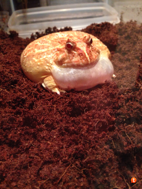 My 4 yr old male albino pacman is in bad shape! I have him in a 5gal tank, he soaks when he wants, has a partial heating pad under cage, eats hoppers every week or so. NOW he hasn't eaten, I picked him up yesterday to change the substrate and noticed he's getting more swollen by the day! His throat is filled with fluid, he's rubbing it like its uncomfortable. I'm always around this frog, i know his habits. I've taken him out, which will normally make him urinate. For 3 days now he's getting bigger and has not urinated!!! I am extremely concerned!Please help, I don't have a vet for him, he's always been in great health. I'm on the verge of tears when I see how water logged he looks. I do have pics- him normal and him last night. I've never posted before, I hope I'm in the right place. I'll try to post pics as well, any help would be greatly appreciated!!!