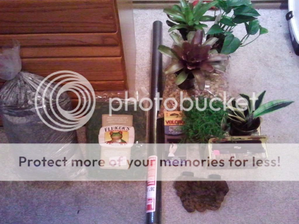 I just couldn't wait any longer to spruce up my frog tank, so I drove around for about an hour to pick up the things I would need to get this done! Once I got home and got to work, it took me about an hour to an hour and a half to complete this project.