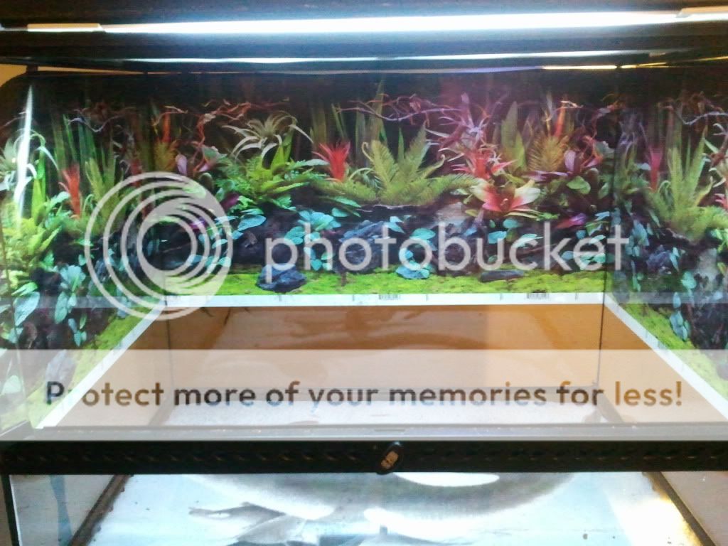 While I had the tank moved away from the wall, I got to work taping on the background. I used electrical tape as it blended in with the black trim of the tank nicely.