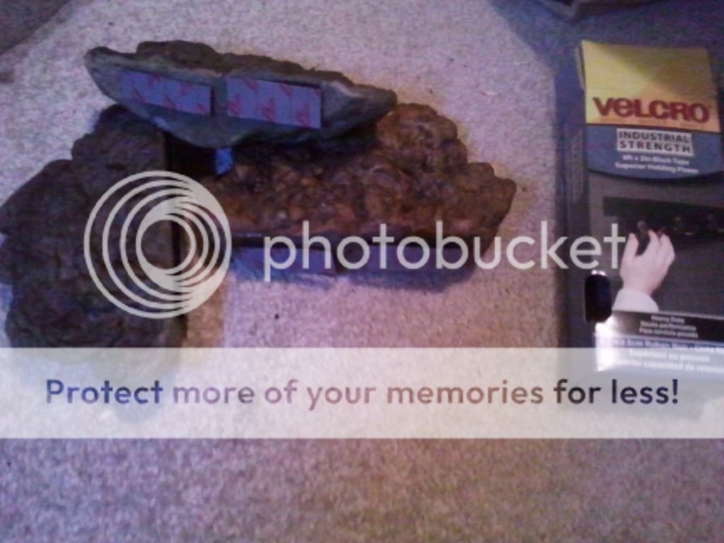 Time for the mushroom ledges to go in! I used Velcro to affix them to the back wall!