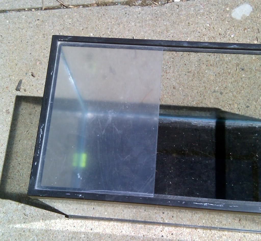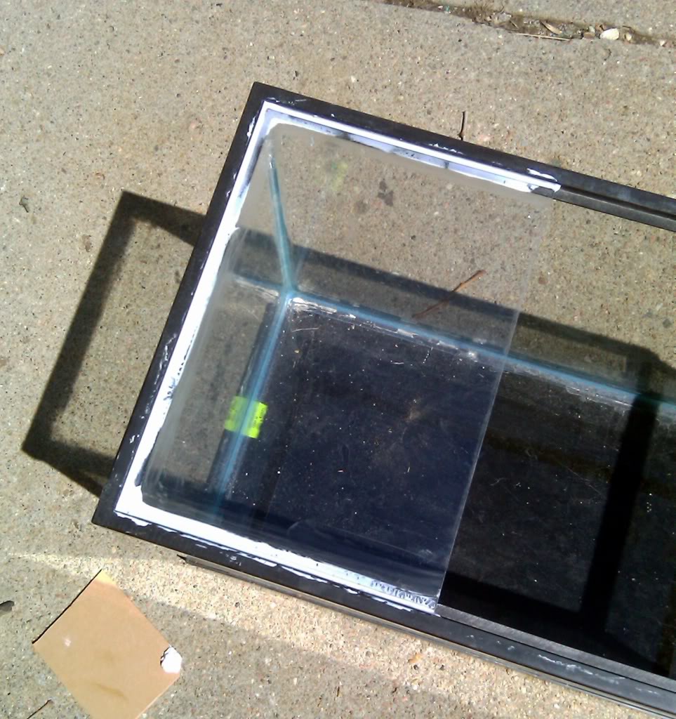 Once it was scored, snapped and ready to install, I added the final coat of spray paint to the exterior and then siliconed in the new panel with standard DAP clear silicone. The intent on this step is not to "glue it" in place, but to create a permanent water tight gasket. Standard Clear silicones seal well, but DO NOT have the tensile strength to support the weight of water. Aquarium rated silicone MUST be used to prevent failure and leakage, especially when plastics are used as they are prone to bowing, expanding, and warping in some applications. Aquarium silicone is much stronger than standard and helps to prevent blow outs.