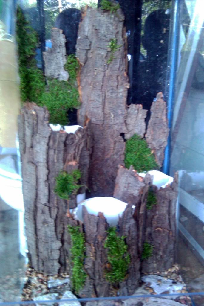 After a few hours of dodging Mexican expletives and a shoe or two, and extinguishing the fire in the oven, I enjoyed a meal of maple-smoke flavored Swedish meatballs and then headed back to the garage/workshop to do some more work. I installed starter swatches of local temperate mosses I cultivate in my backyard high enough up that my pug-dogs are unable to biologically claim them as "theirs". These were very carefully glued in position with the smallest dab of silicone.
