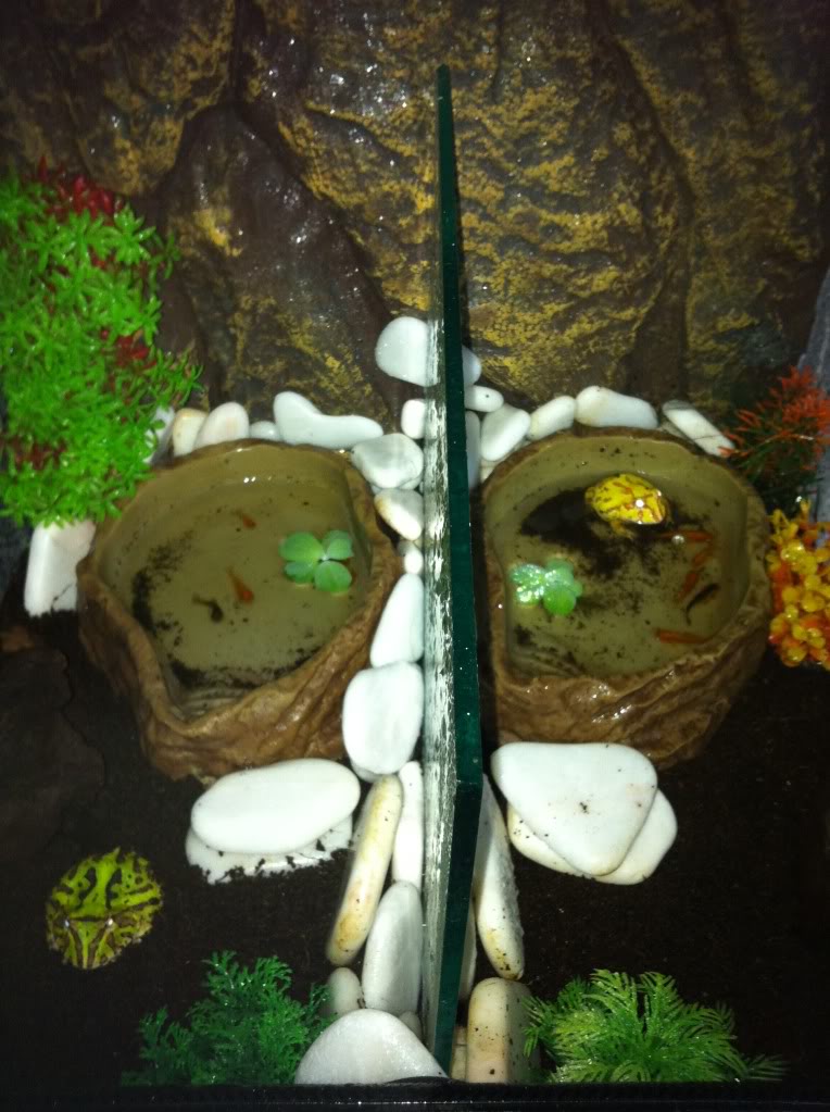 no heater..the weather in my country is perfect for Pacman(Malaysia)..below is my setup..before water rise above cocofiber level....i already added an extra layer of cocofiber to it....so i guess that will do....might as well...stop misting for a while...lol....i mist the tank once daily....maybe i mist too much at one go....