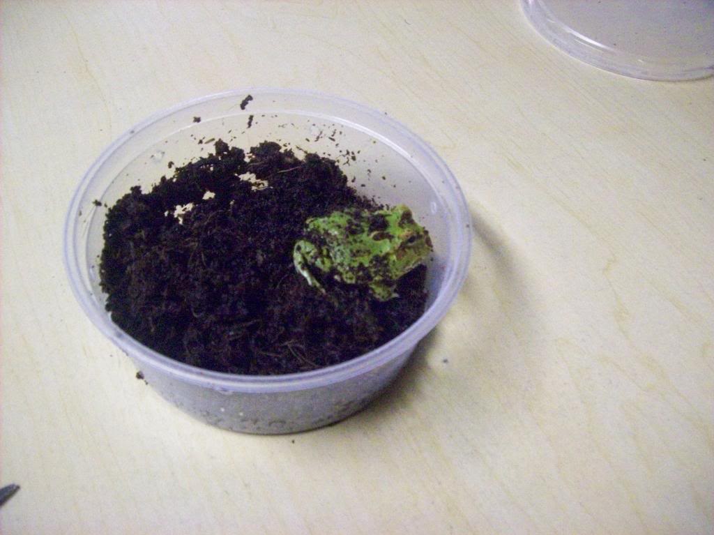 So that's how the purchase of my chubby frog went, then as I'm walking away, what do I see? I nice little Pacman... Housed on bark chips and aquarium gravel...