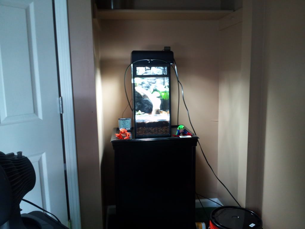 Turned the closet in my office room to the frog closet! I discovered that my stand is big enough to put another 10 gallon on it, so looks like i'll be building another to sit side by side