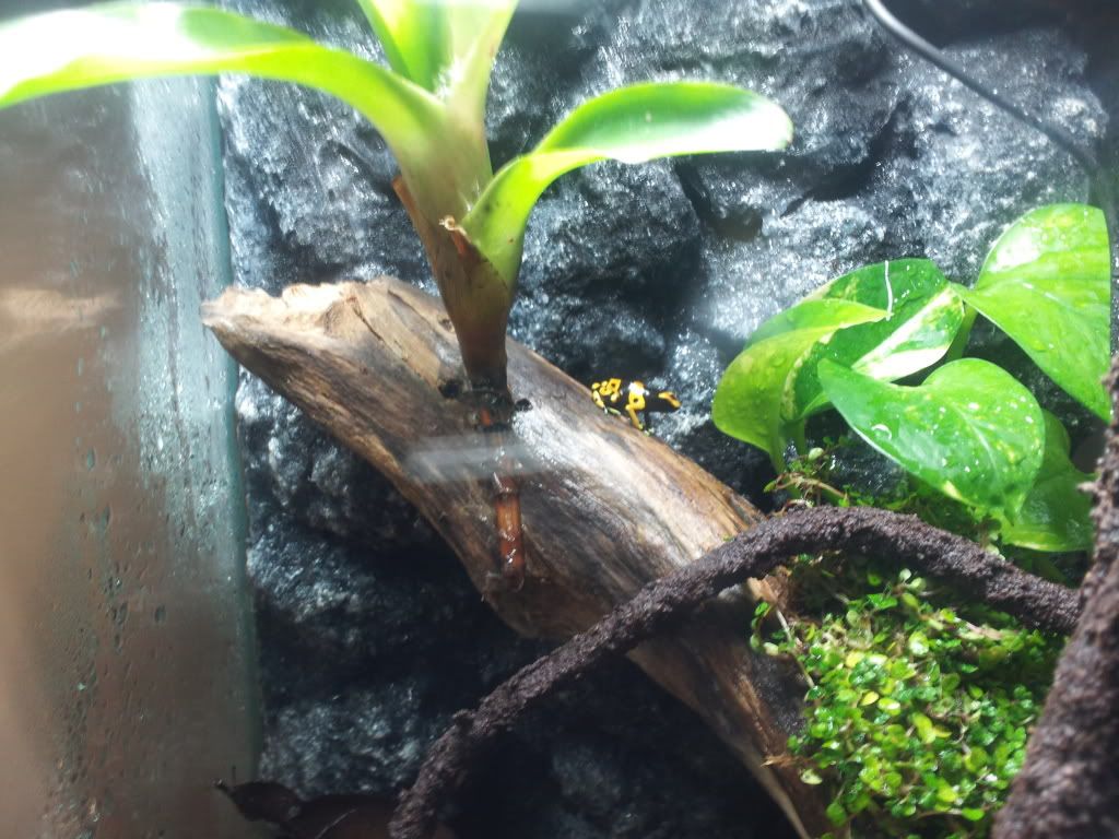 feed the frogs today, one came out pretty quickly from inside the coco hut and was gobbling up some flies, the other one came out a few minutes later, i had to leave for work so not sure if he got a good meal in but hopefully it got some.