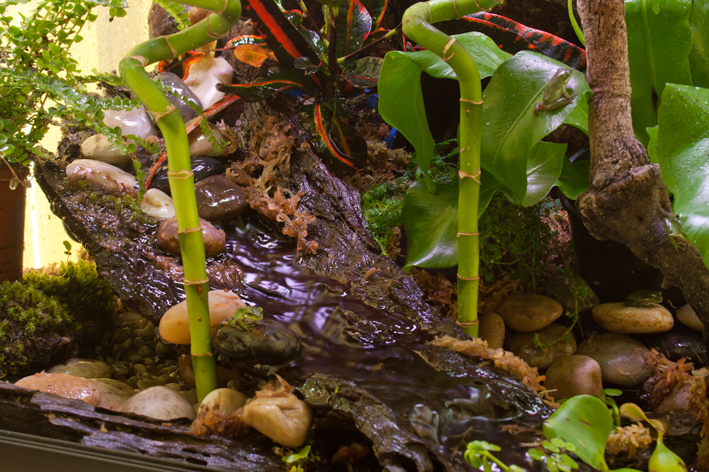 I'm happy with the 'slide' area. I see frogs enjoy getting in there, as they can get wet and jump into a rock, without having to swim.