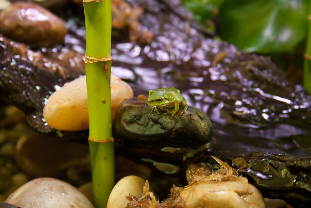 They love getting into the big pond at night, I see them swimming and going deep and up again. Then they climb up the glass, as opposed to just using the rocks to get out... (maybe because they are tree frogs?)