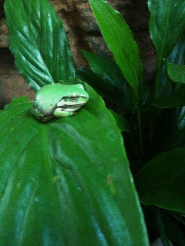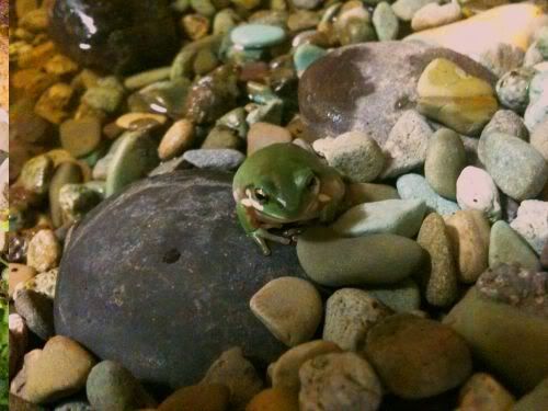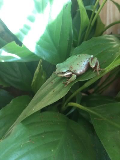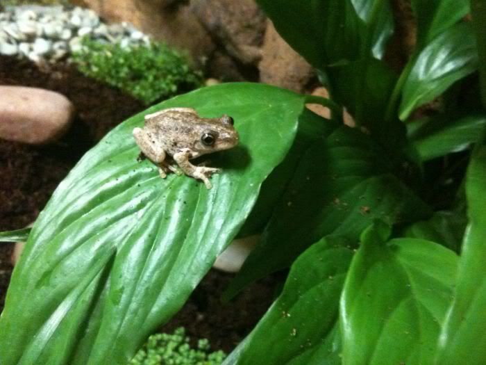 Thrall is a good little hider, it's rare to see him out but when he does, he is always very close by Bubba. Only a weeks difference in morphing time and look at the size difference. (All of my froggies get 'tweezer' fed so it isn't a nutritional issue).