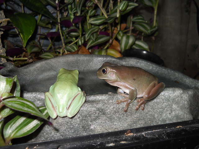 4.4.0 White's tree frogs (Litoria caerulea): Sir Honey Lime, Bok & Choi, Martha, Shirley, Leapin' Loo and Ping & Pong; 0.2.1 Amazon Milk Frogs (Trachycephalus resinifictrix): Otto & Echo and Pip-Squeak aka Tiny