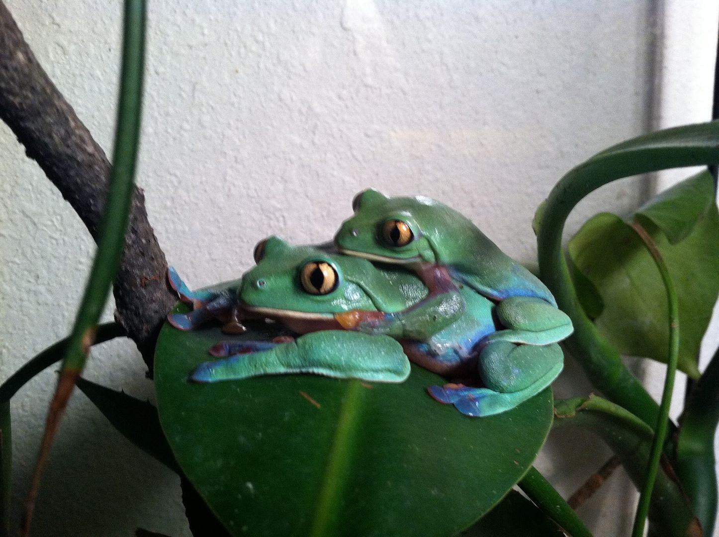 Tough leafy plants where the frogs can hide help reduce stress and provide eating and sleeping platforms.