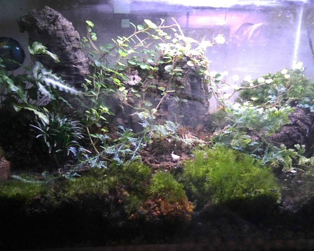 This is a 35 hex tank as originially set up. Later I raised the water level to house 3 firebelly newts (they have since been moved to another tank)