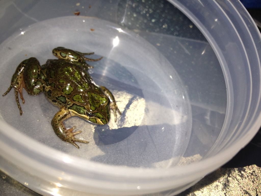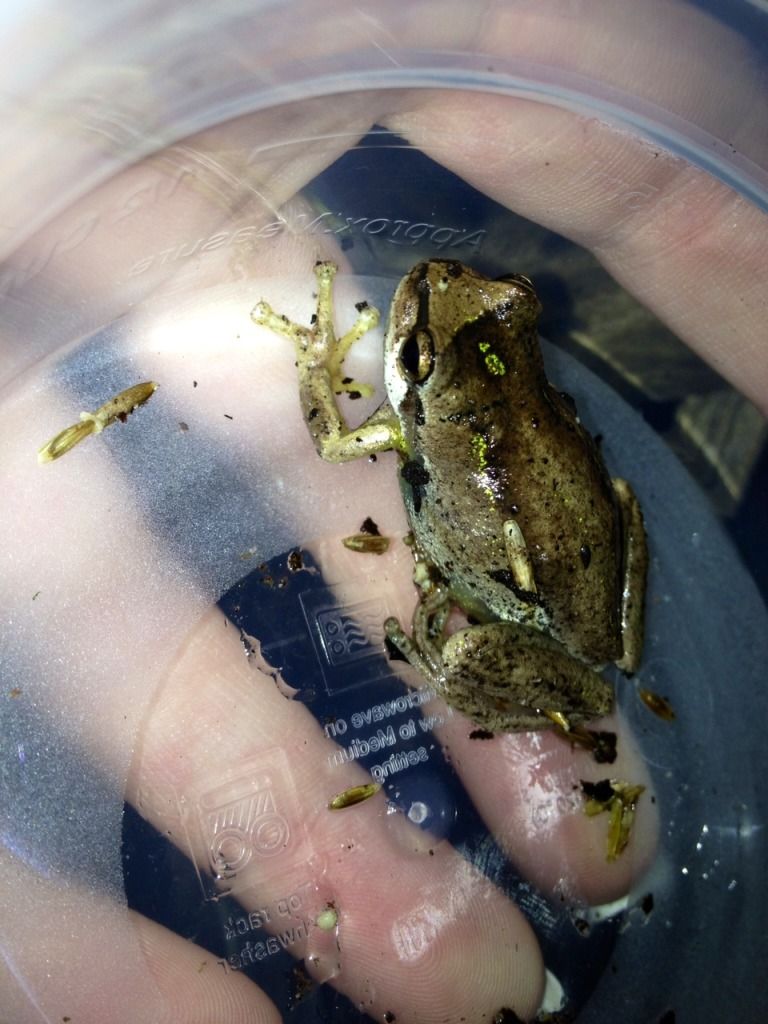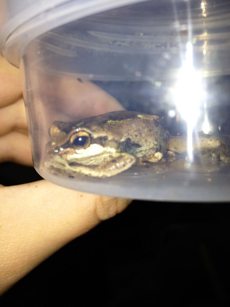 Okay, well I just came home and checked on all the froggies and I found one of the spotted marsh frogs floating in the water of the tank (Aspen). I though he was dead as I kind of nudged him and he did nothing. I picked him and and his little throat moved, his spots are more bright green than normal almost neon and from what Iv'e heard that VERY bad. One of his eyes are shut and he doesnt move at all but I know he is alive. Should I post this as a new thread in the 'frogs' section? I'm not sure cause he was in the same tank as flower. I've put him in a quarantine tank as well similar to flowers. I can't take all the frogs out of the big tank and into separate quarantine tanks untill tomorrow. I can take them to the vet tomorrow, and if it is the grass that is causing all this should I take all the frogs cause the grass is in ALL of the tanks. I'm not really sure what to do so here is pictures of him.