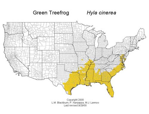 I was just wondering if American Green Tree frogs(Hyla Cinerea) lived in Michigan? I tried to google it, but I couldn't find an answer.
