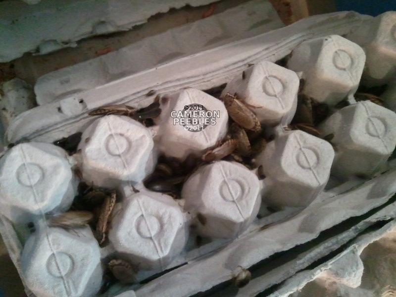 Aside from Hercules, who I have to buy mice for, and the axolots who get pellets and worms, all of my other animals eat for free. Well, kinda. I breed roaches, lots and LOTS of them. The frogs, salamanders, toad, spider, and centipede all eat the roaches. My roaches are raised on high quality puppy food, fruits, vegetables, water gel, and high temperatures. I also breed guppies, springtails, and freshwater gammarus (scuds).
