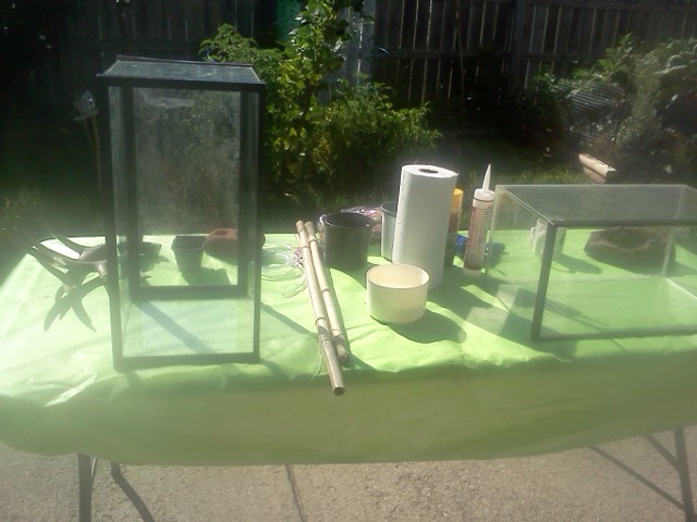 I was going to section off a bottom of the tank with another piece of siliconed in glass to create a half water/half land environment and I really wanted to do a waterfall/trickle down the background but can't really figure out how to do it easily/cheaply.