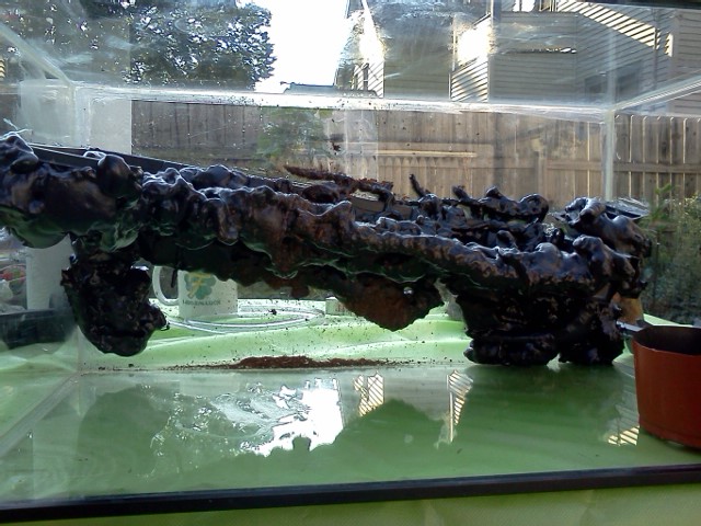 It was sooo messy and did not puff up as much as I think the yellow kind would have, I think I'll do another can of yellow followed by the black stuff. I still want to go up the left side a little and in my other tank I barely covered the "shelf" I put in: