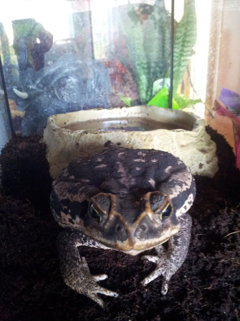 She's not very fond of photo time. She's puffed all up. Nothing but attitude with this Toad. And the most voracious endless appetite I've ever seen