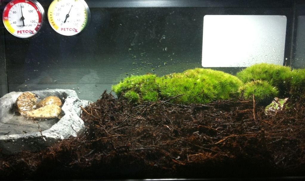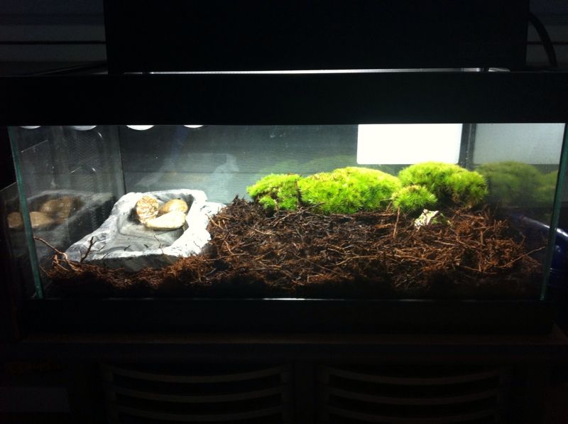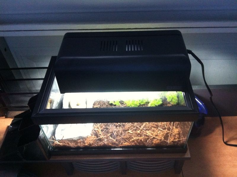Including: glass tank with screen cover on top , light with lamp , 3/4 substate bag for replace .... and lovely Baby green Pacman Frog