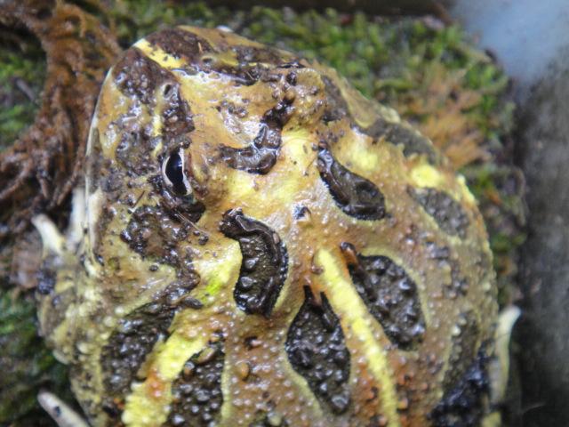 But be aware, not all Ornate horned frogs have those "false eyes," although they usually do.