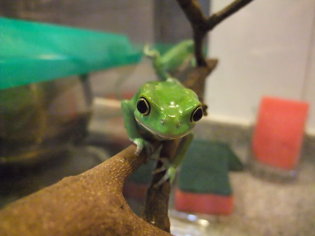 Great pictures! I just got a waxy a couple days ago, they're awesome frogs. Do you find that yours require virtually no light to become active at night, or if they're in an area with some light sort of ambiently visible from another room, does that impact them?