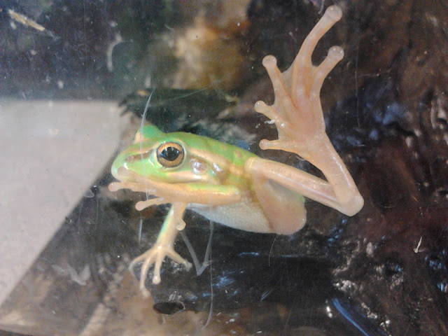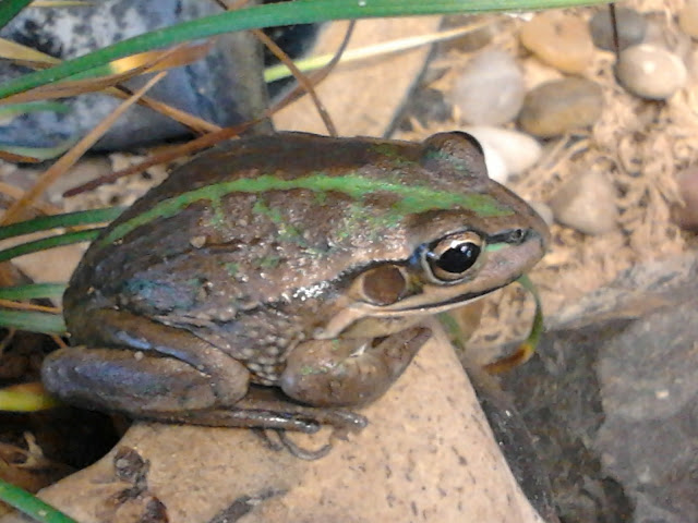 The first photo is definitely a young Green and Golden bell frog (Litoria aurea) possibly male but not completely sure. The second looks to be also a Green and Golden Bell frog but the third photo is definitely a Southern Bell frog (Litoria raniformis) The forth photo looks like A Green and Golden but not 100% sure. I would suggest separating Bud as he is small and possibly could end up as lunch for one of the other larger frogs. The tadpoles are safe for now but once morphed they will also be lunch. Unfortunately you will also have to separate the Southern bell from the Green and Golden's as it's not a good idea to mix species and can be fatal. If you are able to take another photo of the last frog from the top view so I can confirm species or you. I hope this has helped![]()