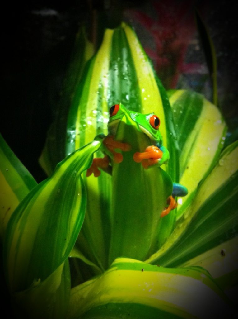 A couple recent shots of my Hyla versicolor. The first is Fatty on a snake plant. The second is Waldo in his post-attack pose, complete with protective transparent eyelids and flopped over right hand.