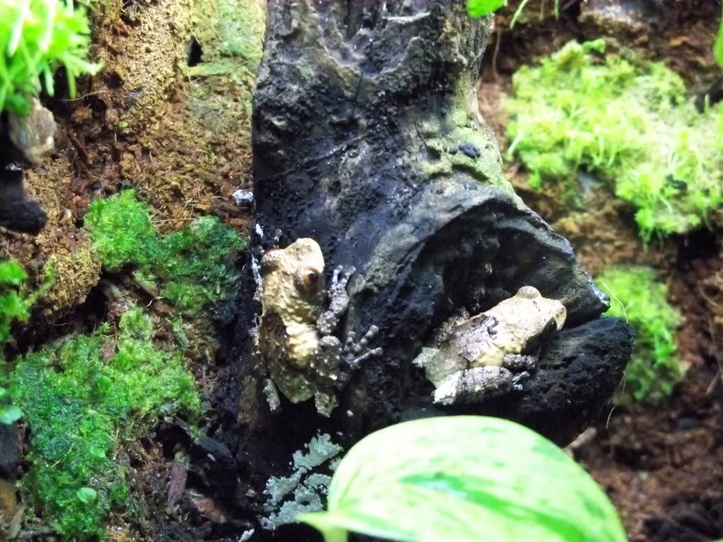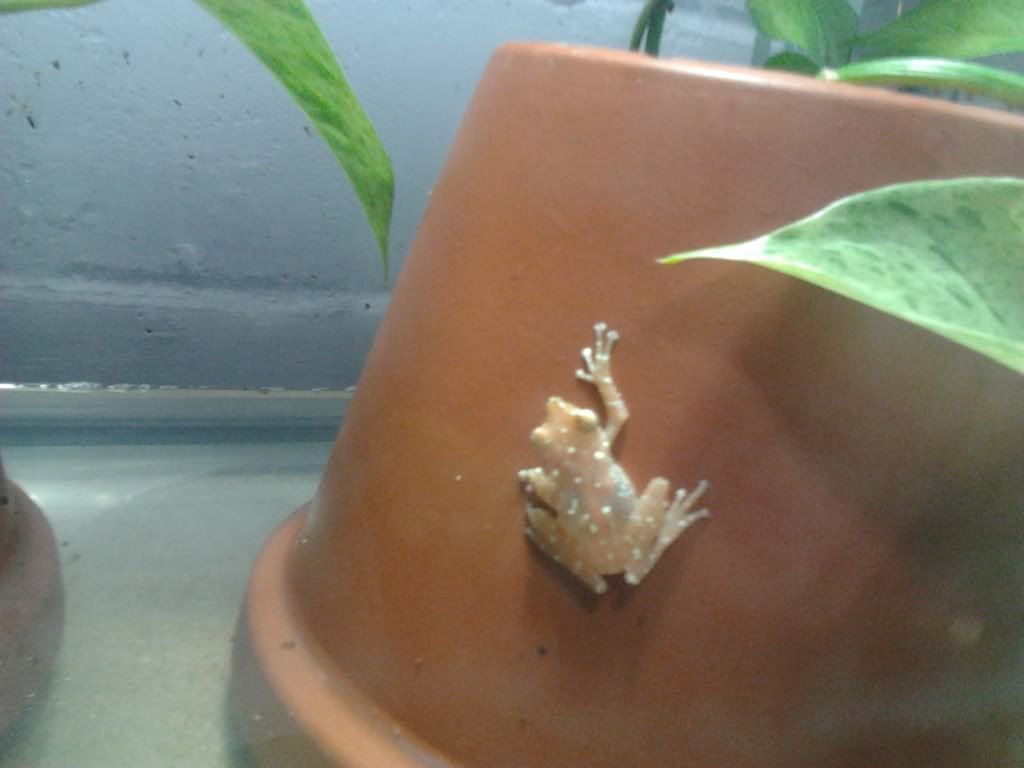 I drive myself crazy trying to keep them happy, the bigger green frog [Barking Tree Frog] is in love with me. Never a time do I put my hand in the cage to change things around or refill the water dish or throw in crickets without him jumping on my hand and when he does it's hard to get him off as he just won't let go.