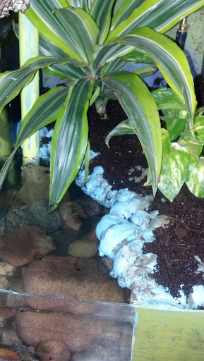 Also, I realized today as I dumped out the dirt that was in those pots that it's potting soil complete with fertilizer and vermiculite and all...I'll vaccuum it out haha, no where near close enough to get frogs in it so don't worry!