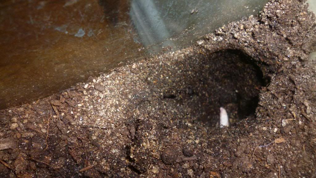 how funny. mine does that too... in fact, I'm fairly certain she's burrowed under the moss in her hide right now. There's a tunnel that goes along the glass where you can see she's burrowed as well... Quite a character.
