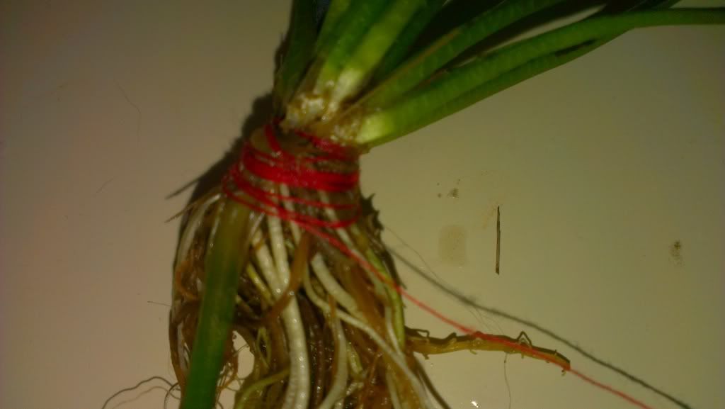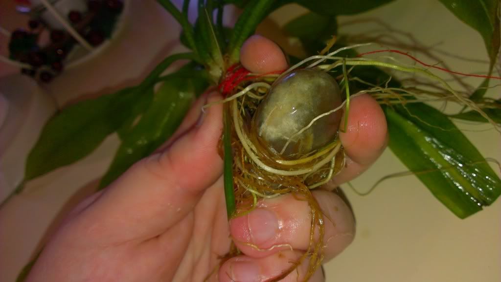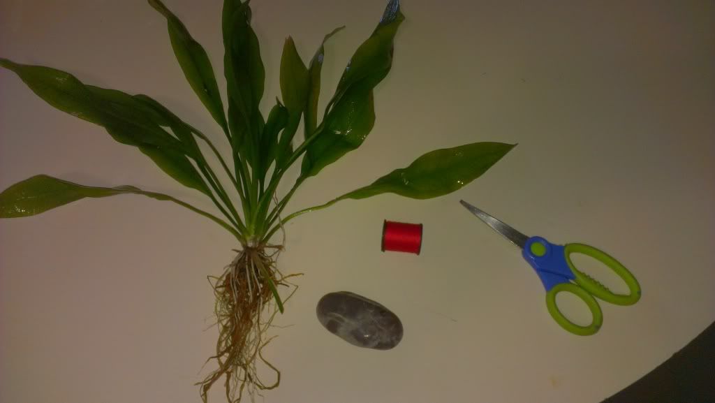 I used red thread so it would be clear, but I usually use tan thread so it isn't noticeable in the aquarium.