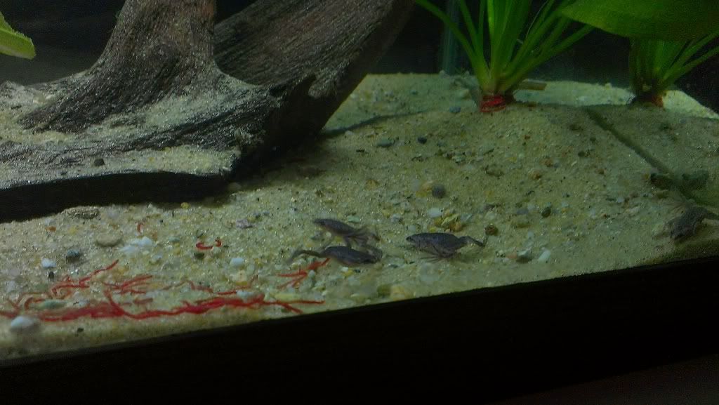 Very nice set up. I just bought four move to go with my one male. I well be phasing out the fish. But some of them are really young so well be a while before they go. My angels are only three. lol The loaches are new additions. I really want an all frog tank like yours. But just no room to set one up. Hmmm maybe a 10 gallon? Oh hubby would love that.