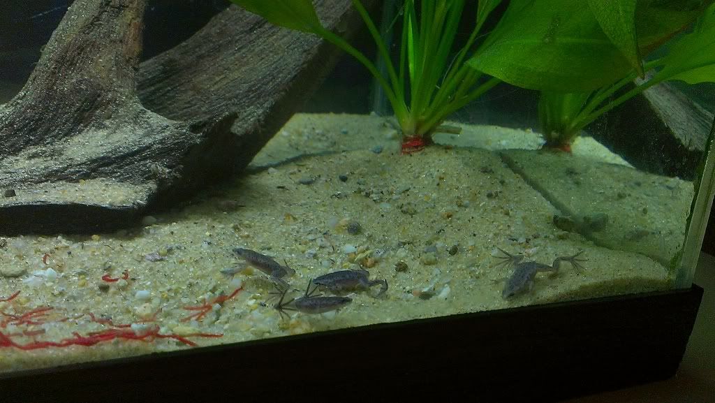 As far as their stuff, they have their own nets and siphon. Thank you but I am well aware of potential contamination risks and have been taking steps accordingly. I have been stealing plant trimmings from established set ups but what is taken will not be put back. I would not be risking my discus or breeding angels for a few new ADF, no matter how cute they are! I had a couple pieces of driftwood standing by soaking so that it would be ready to go into the tank.