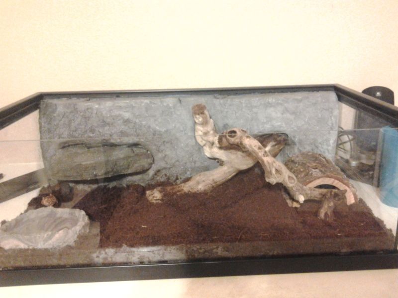 So I went to the ReptileOutpost today to get a new tank and I was looking for a backround but they didnt have one...one of the guys there over heard my conversation and offered me this set up for the price of the regular tank $25! I think I scored!![]()