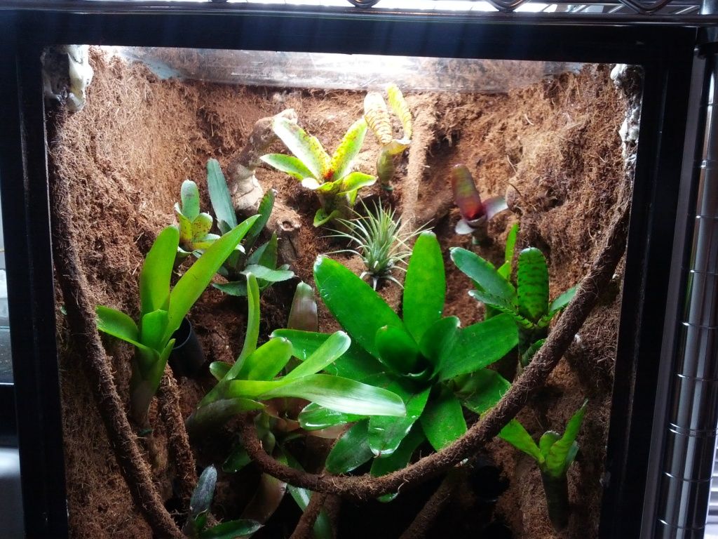 looking good Ed! i know how you feel about the broms, i have the same issue with ferns....lol i'm just not a big fan of broms. be careful though, too many broms and that little viv will look cluttered. keep in mind how big they get. 10 brms that are going to grow into 8" in diameter monsters is gonna look extremely crowded![]()
