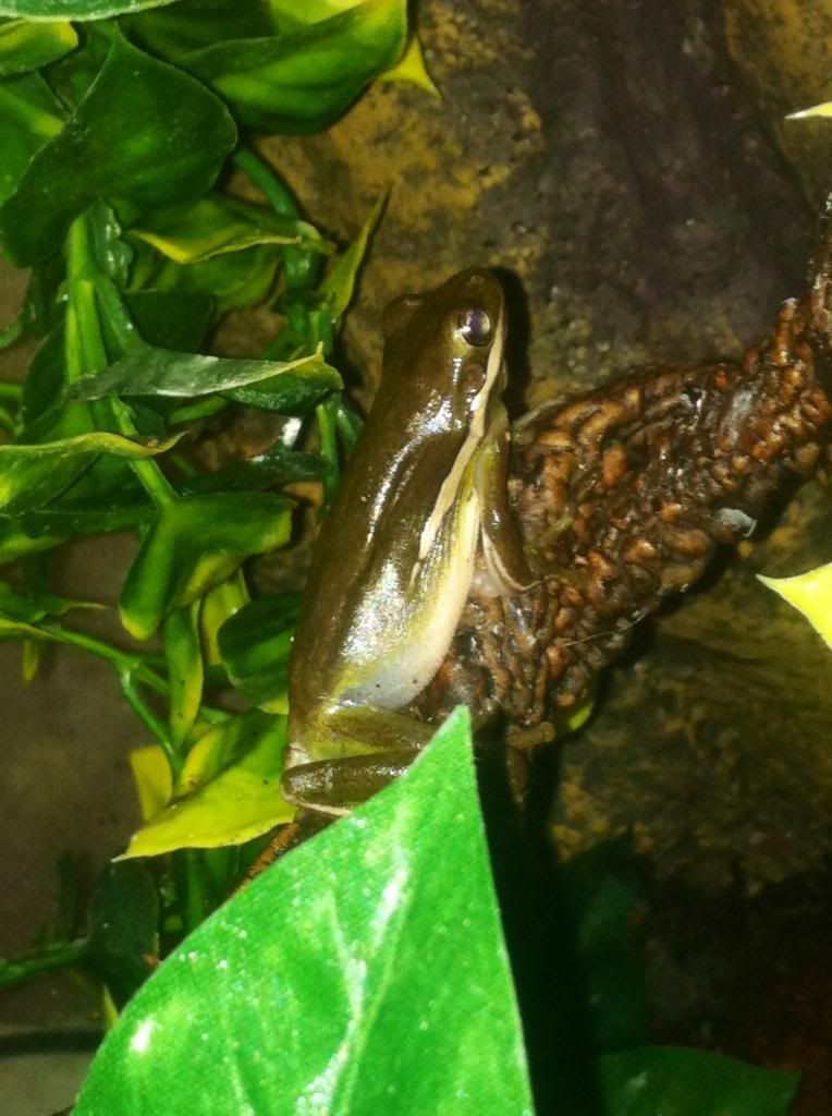So I was feeding my H. cinerea, and one of my two, Verde, had already eaten about four crickets, when I noticed that he seemed extremely skinny on one side. I had noticed this earlier as well during the day, while he was clinging to the top of the background right next to the lamp. When I sprayed the tank a bit (with a portion of it splashing onto him) he seemed to get that stomach mass back, both before and now. He seems ok afterward, so I can't help but wonder what's caused this. I'm including a picture to make it easier to know what I'm talking about (his eye looks cloudy, but that's just the flash reflecting back).
