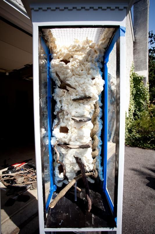 I mounted the tube to the back with silicone, siliconed in the side glass, and then put down a base layer of Great Stuff.