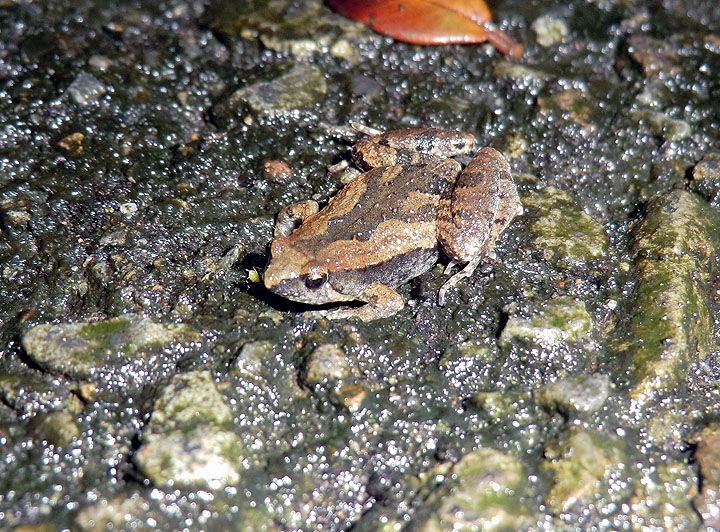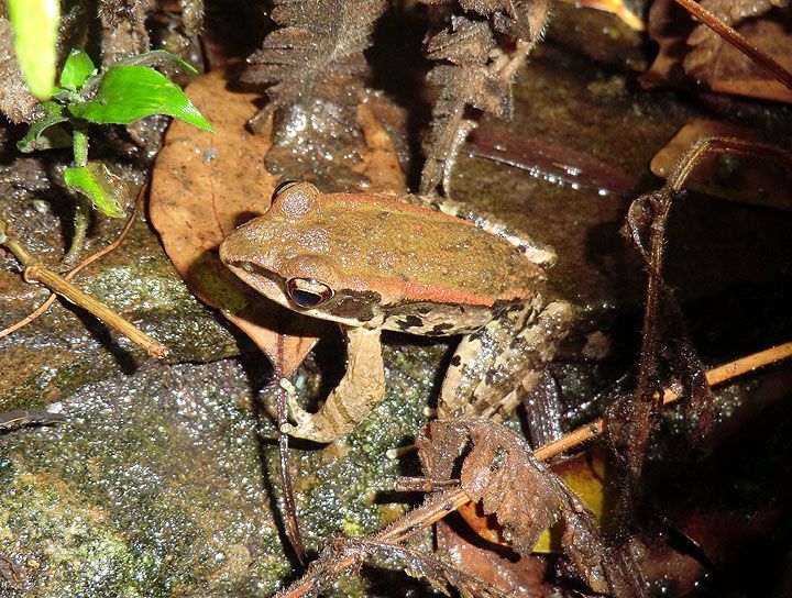 Also seen and blurrily snapped, Kuhl's creek frog, Limnonectes kuhlii, a frog with fangs.