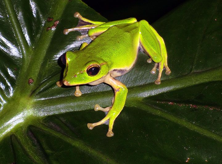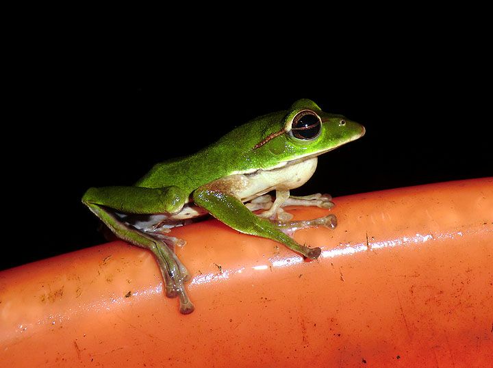 The emerald green tree frog, a Taiwanese endemic, and largest of the green tree frogs here.