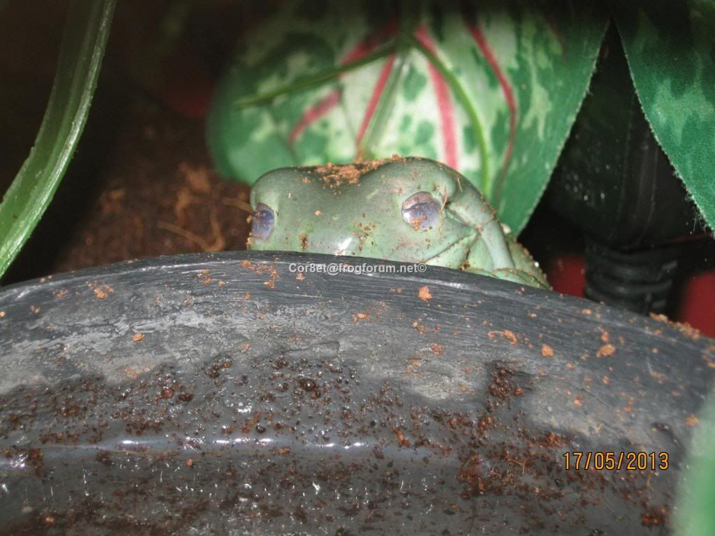 white'a are primarily a nocturnal frog. although some of my 5 will be active at different times of the day, mostly at early evening. i feed in the early evening when i know one is up and at 'em, and her activity stirs the other ones up and the carnage starts.....lol just remember, they are kind of like people, each has it's own patterns and persona. some are more active during the day than other, but all are active at night, if that makes sense.![]()