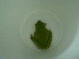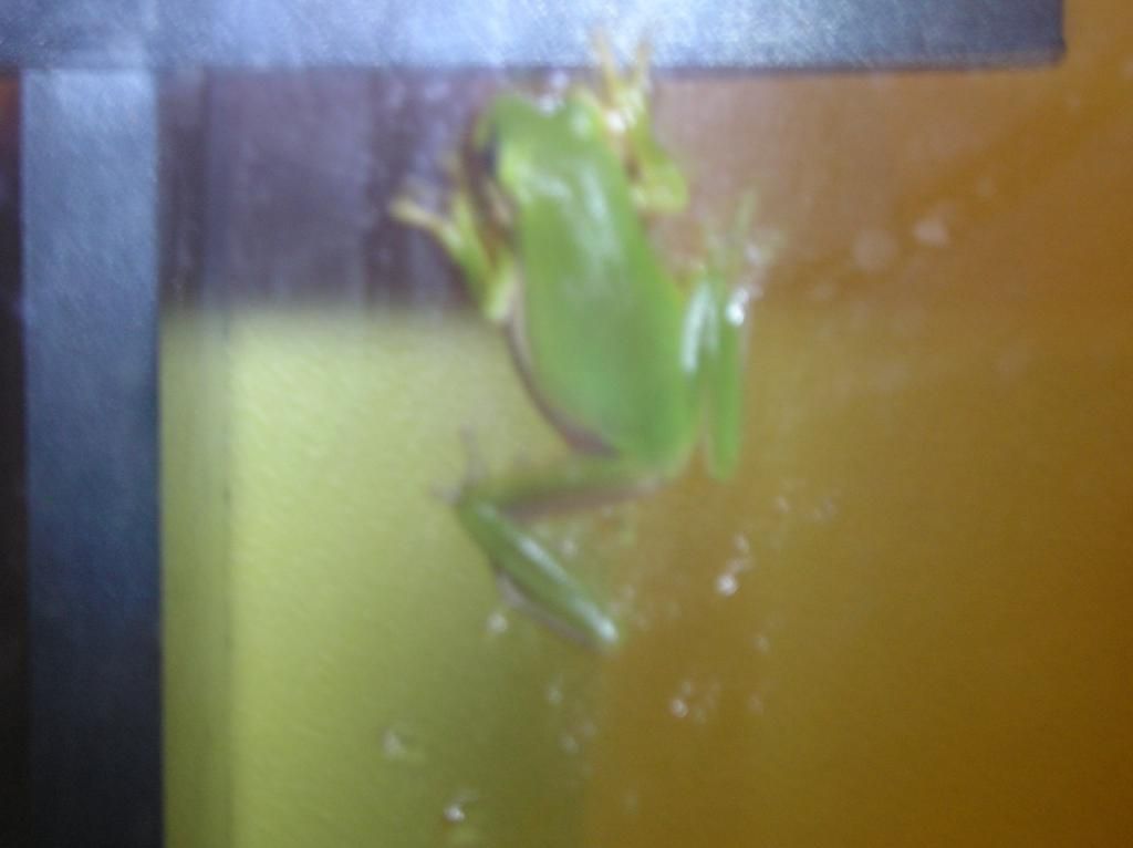 I posted in the intro section, but thought this post might be more prevalent here. My fiance found a tree frog in her work parking lot, and picked it up because it didn't look so good. I've gotten it into a 20 high with dechlorinated water, and he seems to be perking up a bit. I was hoping to get some info on whether he was truly a native tree frog because he is pretty green. I've got some terrible cell phone pictures, and will be attempting to get some more. At the moment he is basically in a bare tank with a small bowl of water, a styrofoam cup for shelter and a few twigs. I bought crickets for him to eat. I was hoping to get an ID on him. I'm also trying to decide if I should keep him, or release him into the wild. I've never kept a tree frog before, and do not want to keep a wild one if it might be considered unethical or harm him in any way. If it's not a native species I'll most likely keep it.