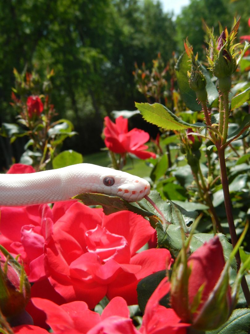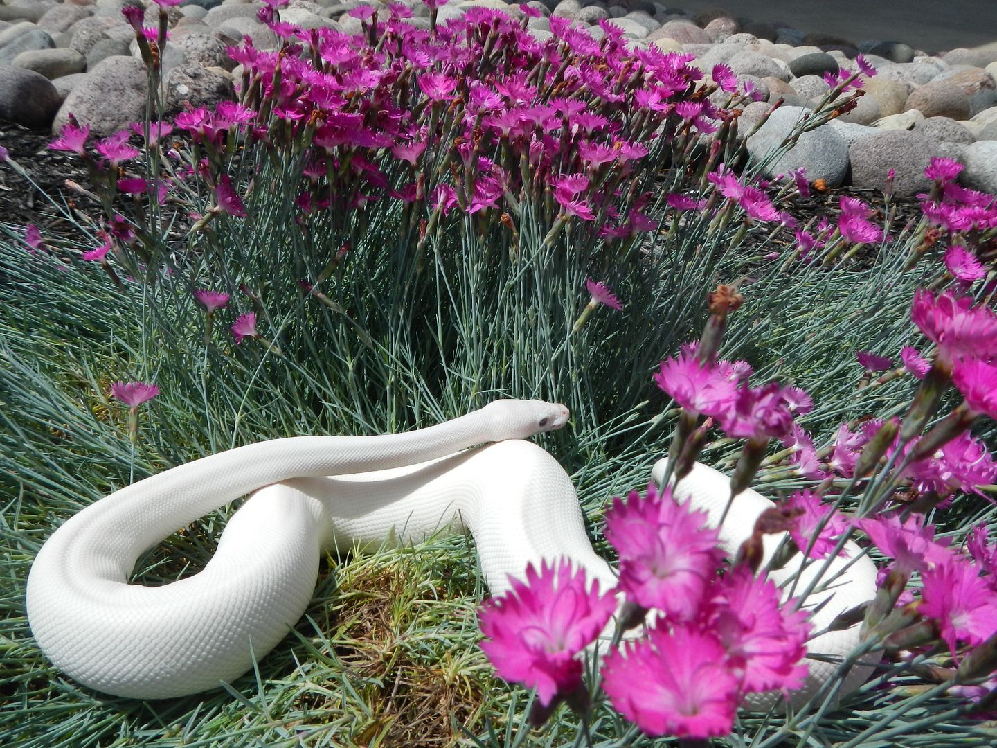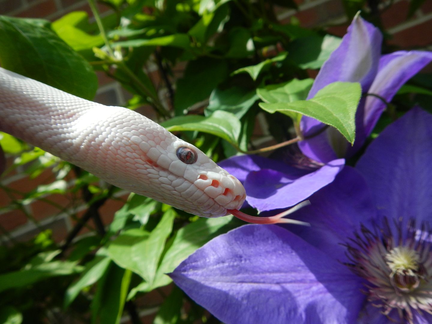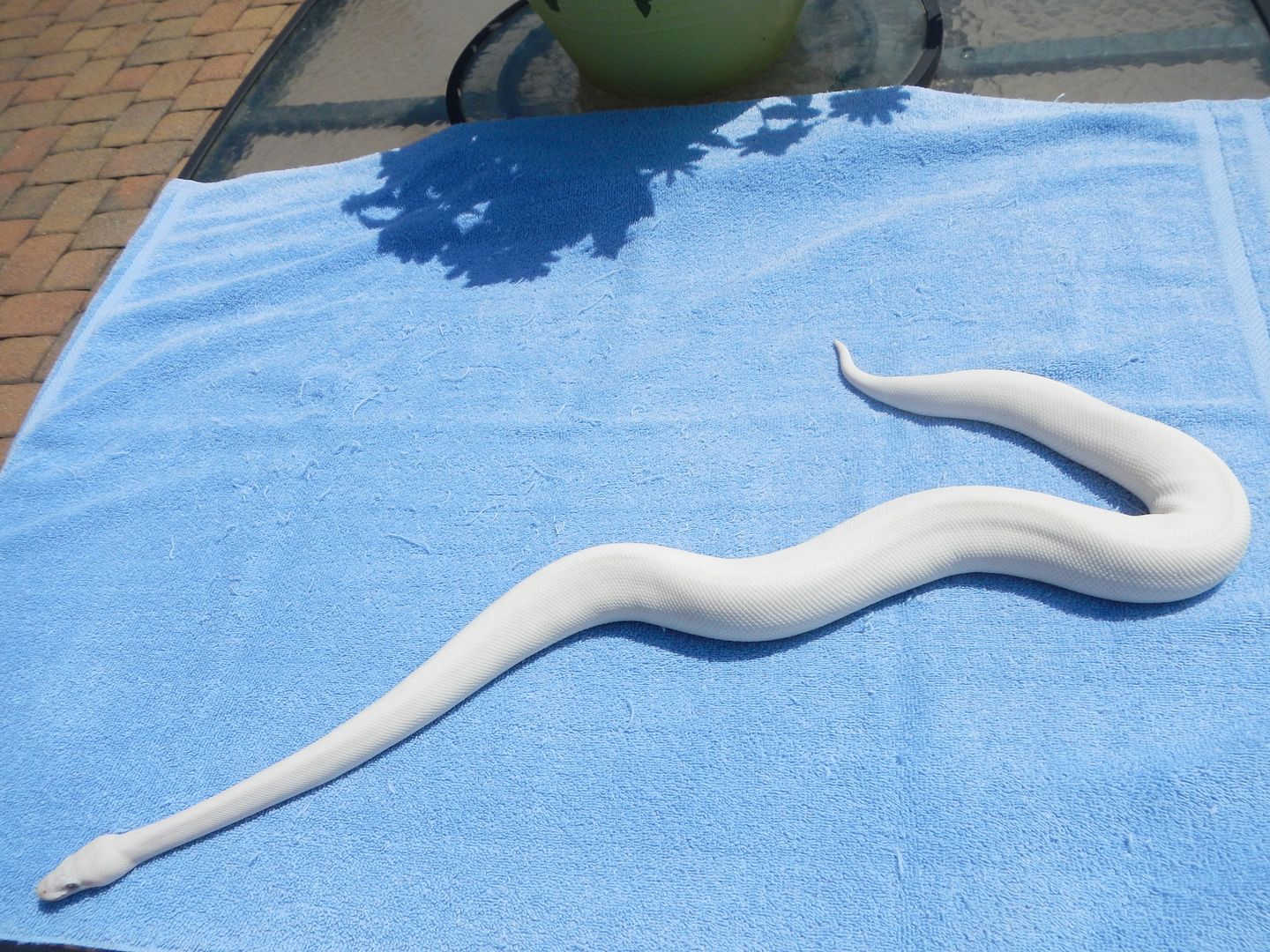 It was a gorgeous day today, so I decided to take Luna out for some fun and photos in the natural light. She's growing up fast; up to 850 grams now! Luna is a blue eyed leucistic ball python.