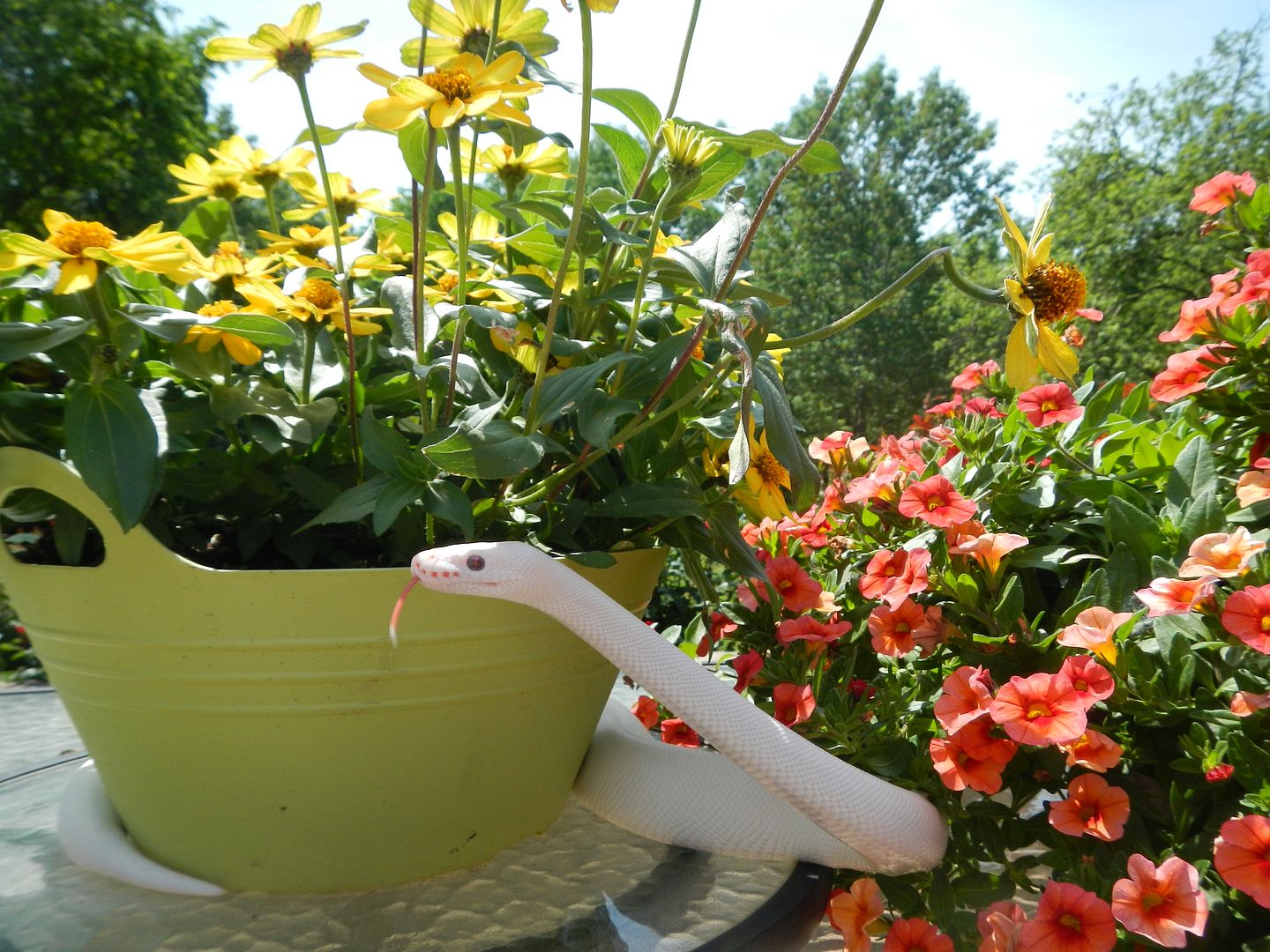 that is one of the best looking snakes i have ever seen, looks pretty happy outside!