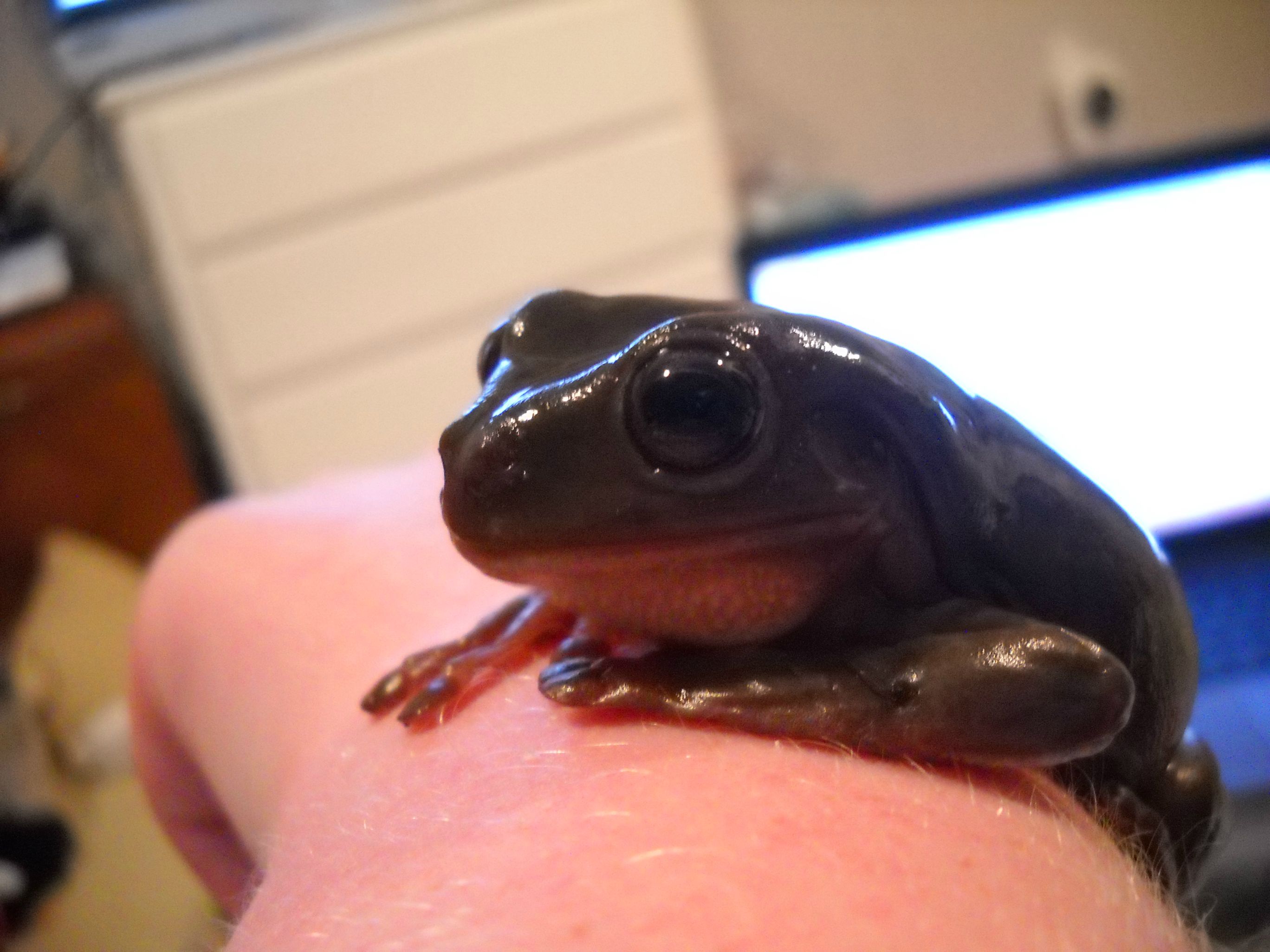 Almost two months ago I walked into my LFS to pick up a special order in the fish department and saw a sign on the nearby herp tanks that said whites tree frog up for adoption. I decided to see the frog in the back, it was a 3 year old female whose original owner kept her in an aquatic setup and the store had not yet changed her setup (only been in the store for 3 days) the reptile guy was out of town so other employees drained the water but left the gravel. Mom approved of me taking in another animal (since it came with all the supplies and was older) so i got her the next day. It took two weeks to clean out and redo her setup but she seems much happier now. I'll post some pics of "Kati Thanda" and the setup after class today.![]()