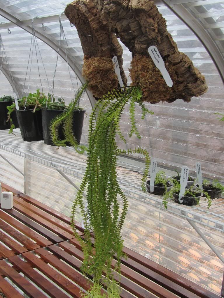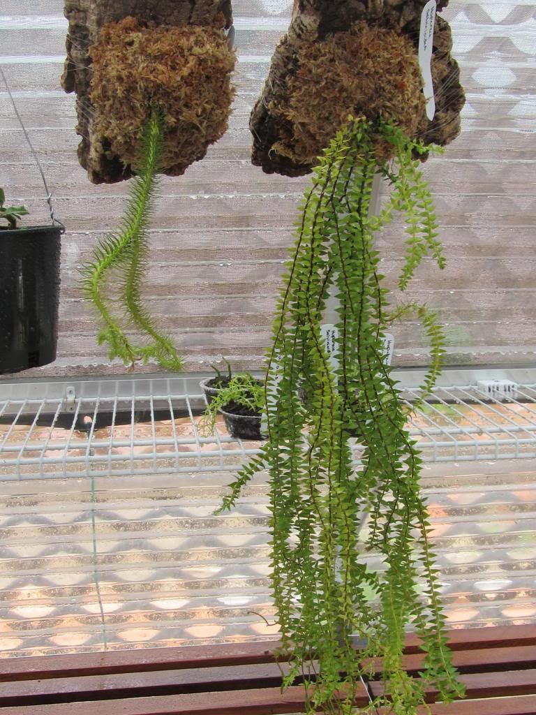 Huperzia salvinioides and Huperzia squarrosa, along with lots of baby Huperzias on the top shelf waiting to be large enough to mount