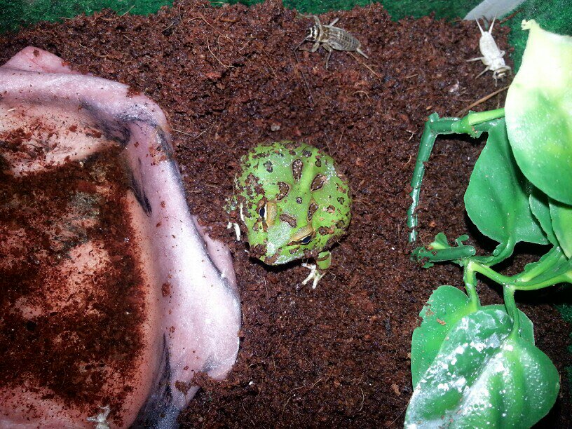 I just bought a baby pacman from my local petsmart, he seems rather skinny. Two separate employees said he was eating 1-4 small crickets a day but looking at him he seems rather bony. Do these pictures look concerning?