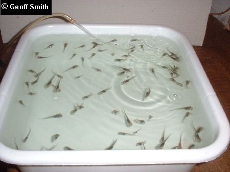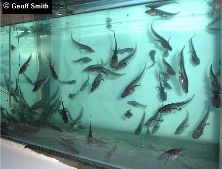 "These tadpoles are filter feeders, which means that they obtain their nourishment from food material suspended in the water. The biggest problem with this is that you cannot use a filtration system to maintain good water quality because it would deprive the tadpoles of food. Without a filter system the water is soon contaminated and the tadpoles exposed to the risk of disease so most of the effort has to be devoted to regular water changes.