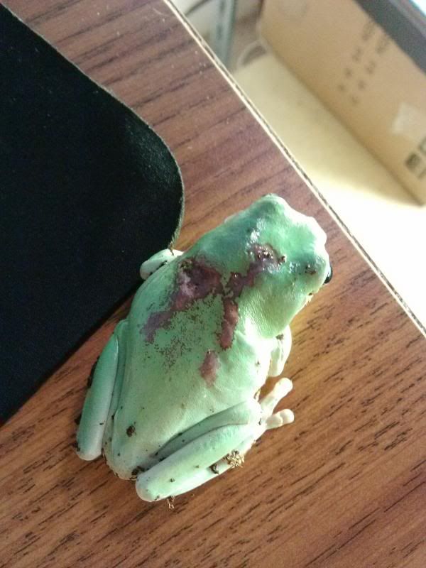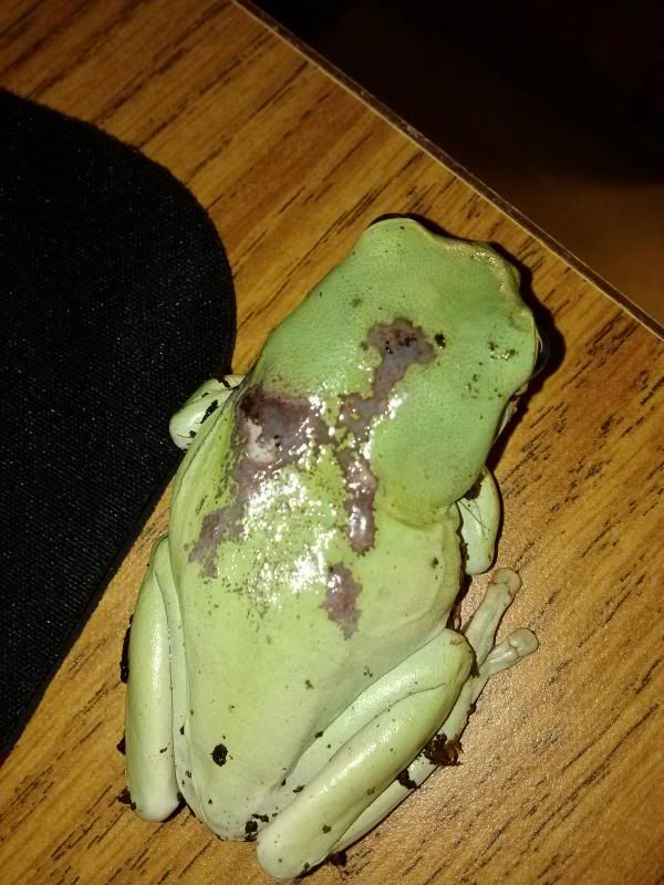 I found these on him a couple days ago. They are strange grey spots, each an odd shape. They seem to be blister-like, they've risen from the surface of his skin, and have since opened. He's acting completely normal, other I than the fact I can tell these are bothering him. I have applied some aloe vera diluted water to try and help. What else should I do? I have no clue what may have caused this. Any ideas?