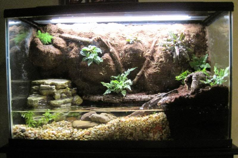 Thanks to the great instructions from DerangedChipmunk's many threads I have a fire belly toad terrarium set up. My toads arrive Thursday.